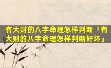 判断 🦆 八字中有 🐈 大财的命理特 🍀 征