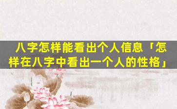 如何从八字看出 🍁 个人 🌷 信息 🐞