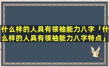 具有领袖能力八字 🕷 特 🌹 点 🌳 :