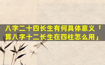 具体意义:八字二十四长生描 🕊 述了一个人一生命理发 🕷 展变化的过程,从,出生,到死亡再从死亡到重生循环往复。
