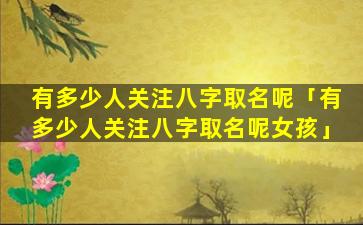 综合这些数据 🍀 ,可以推断关注八 🦁 字取名女孩的人数在数十万至 💮 数百万之间。