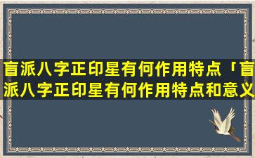 盲派八字正印星 🐧 的作用特 🐼 点 🦅