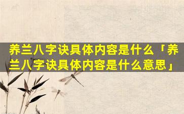 养兰八字 🌹 诀具体 🐦 内容如 🐵 下: