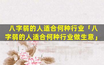 根据所谓“八字命理”的说法八字,“弱”的,人适 🐶 合的行业因人而异需要根据具体八字来分析。不,过 🐋 ,一般认为八字弱 🐵 的人适合从事以下行业: