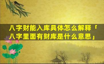 八字财能入库是指财星(生我者为财)进入库(日)支或 🐒 月干之墓库中,表,示财运 🦉 稳定不会轻易流失。