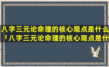 八字三元论命理的 🐡 核 🦆 心观点: