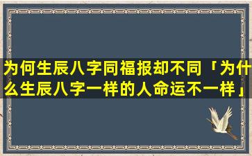 生辰八 🐱 字相同的福报不同 🦢 的原 🦍 因