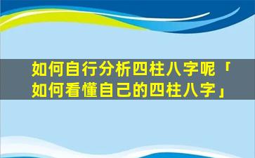 自行分析四柱八字需要一定的命理基础 🌼 。