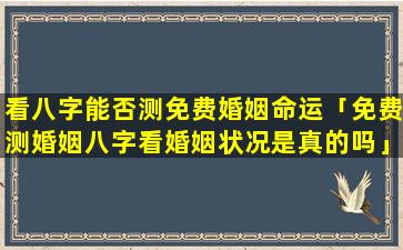 看八 🍀 字是否能免费测算婚姻命运取决于具体情况。