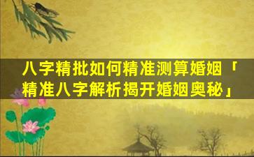 八字算命术中,婚姻主要通过分 🐯 析八 🐼 字中日主与配偶星之间的关系来进行 🐎 测算。