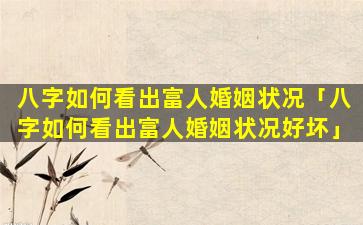 八字中看 🐬 出富人婚姻 💮 状 🐧 况