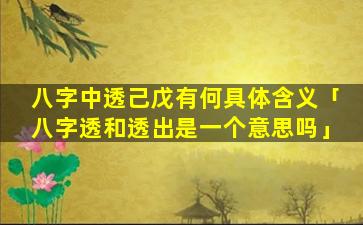 需要注意的是,八,字中透己 🌹 戊的具 🦁 体含义还需结合八字整体格局而定具 🌷 体表现可能有所差异。