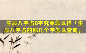 生辰八字占,又,称八字算命或四柱预测是一种古代流传下来的命理学方法。其,依,据,是一个人的出生年月日時配合 🐳 天干地支组成八个字然后利用这 🌵 些字来推算其性格、运。势等