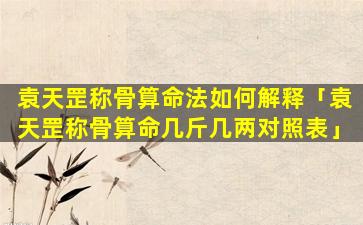 袁天罡 🌵 称 🦢 骨算 ☘ 命表