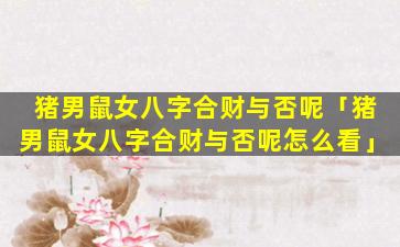 猪男 🦋 鼠女八字合 🌻 财 🐛 的方法