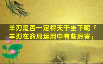 天干羊刃 🌾 :作用力稍 💮 弱,主要影响 🦢 性格和行事风格