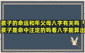中医 🦄 认为,子,女的命运与父 🦈 母的八字有一定的关系但并非决定因 🦟 素。