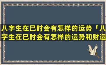 巳时 🐈 (上午911点)出生的八 🐕 字运势