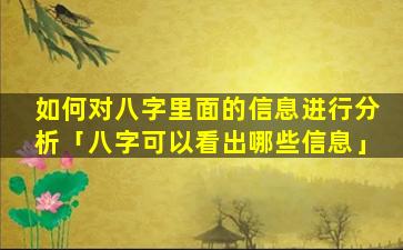 八字可 🍀 以看出以 🦉 下 🐼 信息: