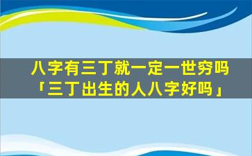 因此,单纯从“八字有三丁”来 🐕 ,判断是否一世穷是不准确的。需要结合八字的整体格局、生。克关 🐶 系和用神等因素综合分 🌷 析