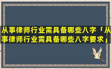 从事律 🐈 师 🐯 行业需 🐬 具备的八字要素: