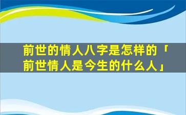 前世情人这辈子可 🐈 能会有 🐬 以下 🌻 关系: