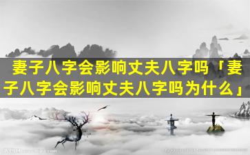 妻子八字不 🦟 会直接影响 🌷 丈 🐋 夫八字。