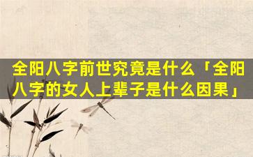 根据传统八字命理,并没有明确的说法指出“全阳八字的女 🌷 人”上辈子是什么因果。