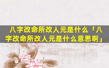 八字 🐛 改命中的 🐼 人元指的是 🌴 命主的日柱。
