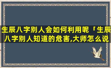 生 🐘 辰八字被 🦆 别 🕸 人利用的方式可能包括: