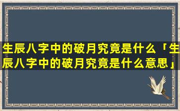 生辰八字中的 🐦 「破月」是指一個人在某個月出生,而這個月與八字中的日 🍀 柱相 🌿 沖。