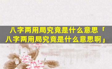 八字 🐞 两用局是指八字命理中的一种特殊格局指的是八字 🐟 中,同,时,具备两种可以取用的十神这两种十神都可以成格对日主产 🌷 生吉利的影响。