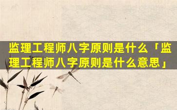监理 🐝 工程师八字原 🐎 则 🦋 :