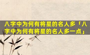 “八字中为何有将星的名人多的”说 🐟 法是一种坊间 🐘 流传的命理学观点,缺乏科学依据命理学理。论认为将星是八字中的一种,“特”殊,配。置,代“表着军事才能和领袖能力现实中很多有成就的军事家和领袖人物八字中并不一定 🦁 有将星”。