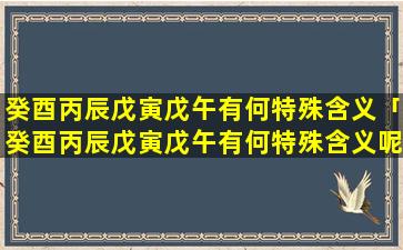 “癸 🦢 酉丙辰戊寅戊午”是一 🐞 组具有特殊含义的干支,代表着五行平衡、阴、阳和谐历史转折和美好寓意。