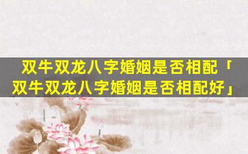 双牛双龙八字婚姻 💮 相 💐 配与否