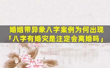 “婚姻带异 💮 象八字案例为何 🦉 出现”