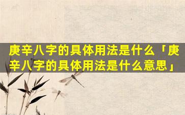 庚 🪴 辛八 🐧 字 🦅 的具体用法