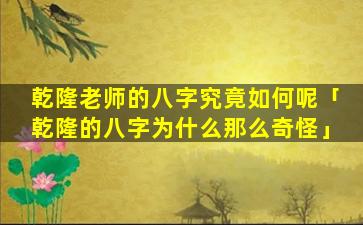 乾隆帝的八字并不奇怪。他的出生 🦟 时间为1711年9月 🕸 25日,对应于八字为:
