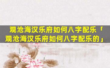 汉乐府《观沧海》八字配 🐒 乐: