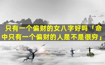 需要注意的是,八,字中的信息是复杂多变的单凭“只有一个偏财的”因素并不能完 🐴 全判断女性的财运和婚姻运势。还需结合八字中其他五行、十、神。格局等因素进行综合分析
