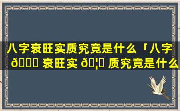 八字衰 🐵 旺的实质 🐱