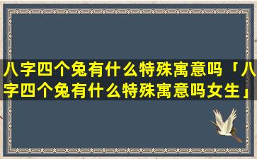 平安吉 🌼 祥:兔子在十二生肖中与卯年对应卯,时,是,黎明破晓 🐳 之时象征着希望和光明因此八字四个兔的女生也寓意着平安吉祥。