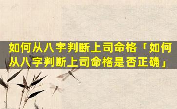 根据八字判断上司 🦉 命格好 🌸 坏