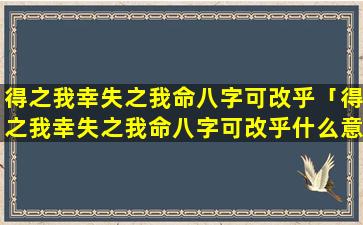 “得之我 🌳 幸,失之我,命八 🐱 字可改乎 🌺 ?”这句话有以下含义: