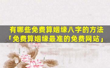 在线免 🐬 费算 🐎 姻缘八字的方法:
