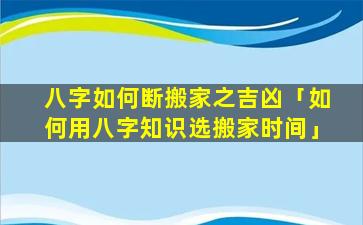 八字断搬家吉 🌲 凶的方法 🌳 :