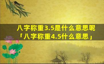 “八字称重3.5”是指八字算命中的 🦄 一个概念称,为“四柱称骨”,又“称称”骨 🌹 “算命或骨重算命”。所“谓称骨”,就“是”,将“一”个。人的出生年月日时按一定的规则换算成一定数量的骨重然后根据这个骨重来预测其一生的吉凶祸福