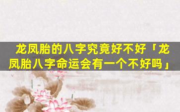 龙凤胎的八字好不好需要 🦢 根据具体情况进行分析不,能一概而论。