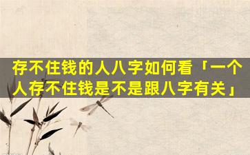 八字中 🐒 主存不住钱 🦍 的特征